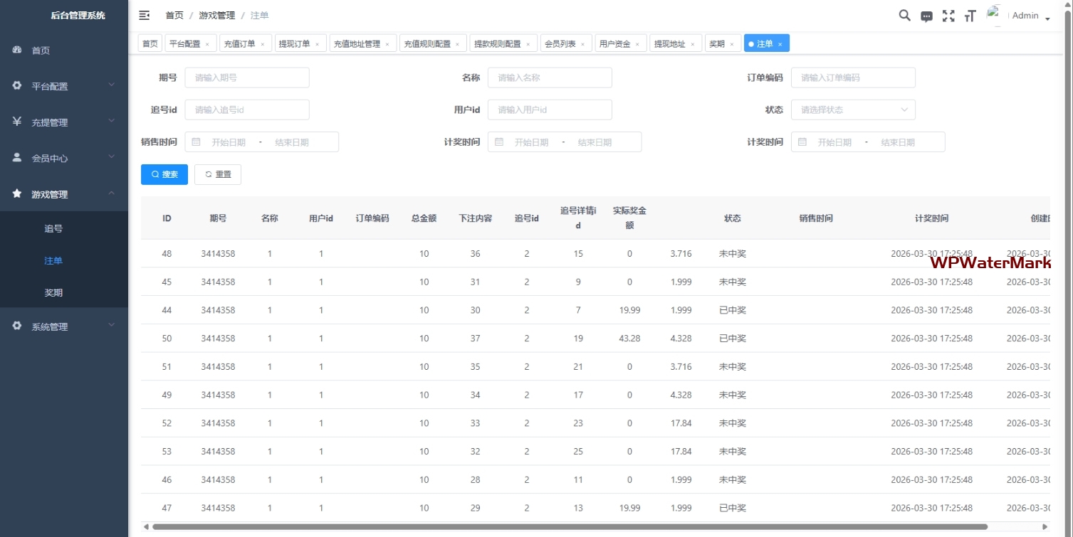 开奖与派奖流程同样实现自动化处理,系统会对订单进行批量校验,根据开奖结果计算奖金并发放到账户,同时处理追号订单的资金回退逻辑,形成完整闭环。