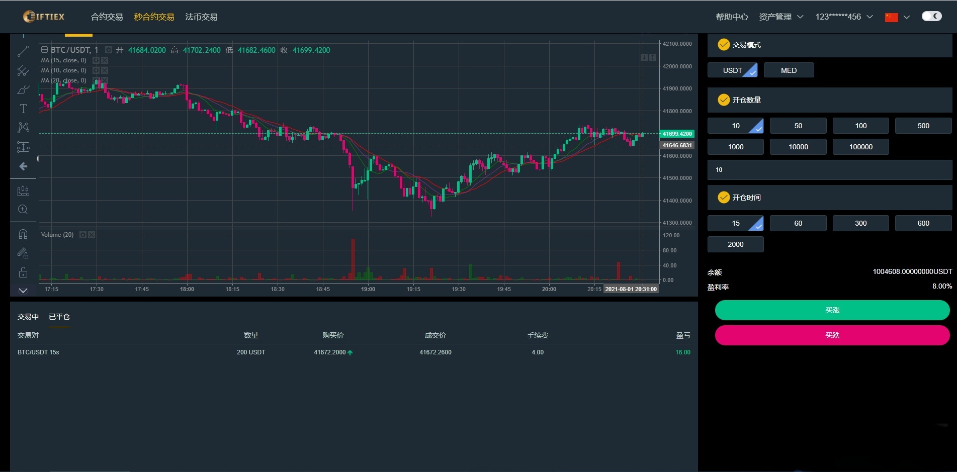 - 合约交易与杠杆系统:集成USDT秒合约和杠杆交易功能,支持多空双向操作,自动计算保证金和强平规则。交易引擎经过优化,确保高并发下的订单匹配效率,减少延迟,提升用户体验。