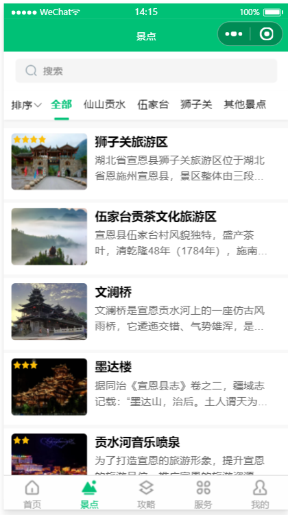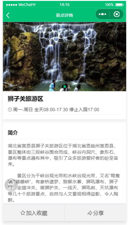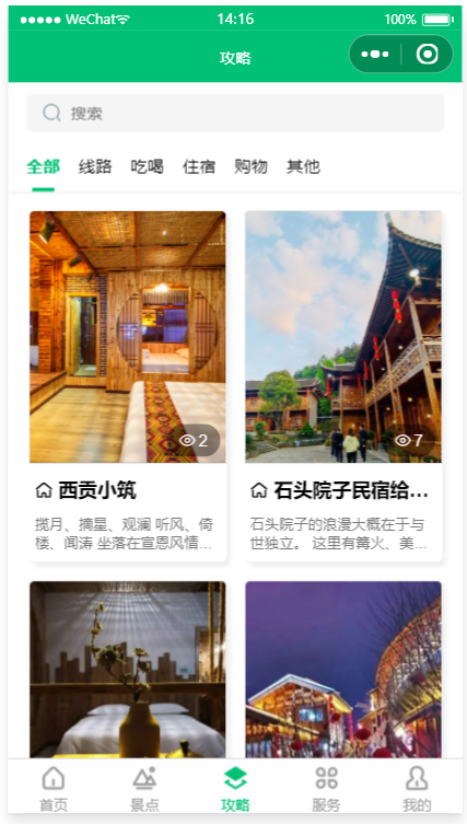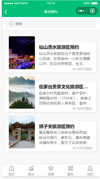 为游客朋友提供多元化服务的一站式数字文旅平台,提供“吃、住、游、购、娱”等旅游行程中的多种服务,全面支持景区介绍,景点攻略,景点预约,停车预约、景区导览等功能,游客可以在小程序中了解旅游度假区的景点信息、历史文化、各类活动等。前后端代码完整,采用腾讯提供的小程序云开发解决方案,无须服务器和域名。