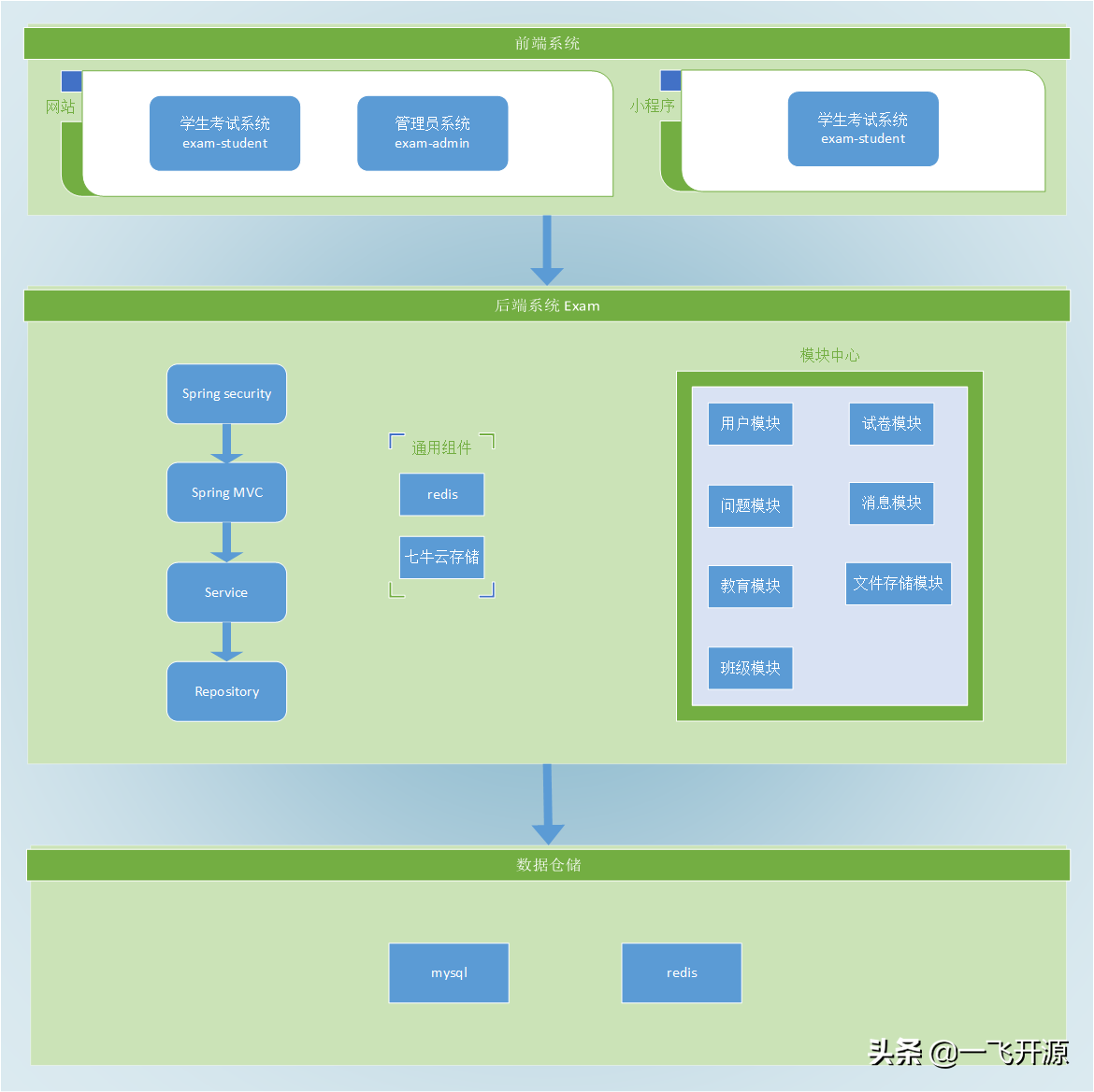 开源考试系统是一款 Java + Vue 的前后端分离的考试系统。主要优点是开发、部署简单快捷、界面设计友好、代码结构清晰。支持WEB端和微信小程序,能覆盖到PC机和手机等设备。 支持多种部署方式:集成部署、前后端分离部署、docker部署。