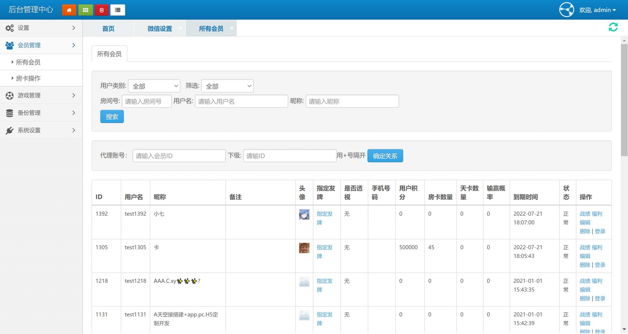 1、开启透视功能要在会员管理->所有会员->编辑下面的功能到期时间,选择功能的到期时间。