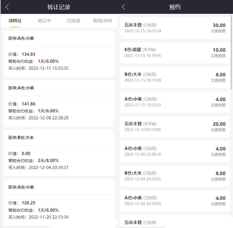 一:五谷生金有五个稻场,严格控单抢单模式,抢到可以得到持仓溢价收益!抢到就是赚到,小伙伴们加油!