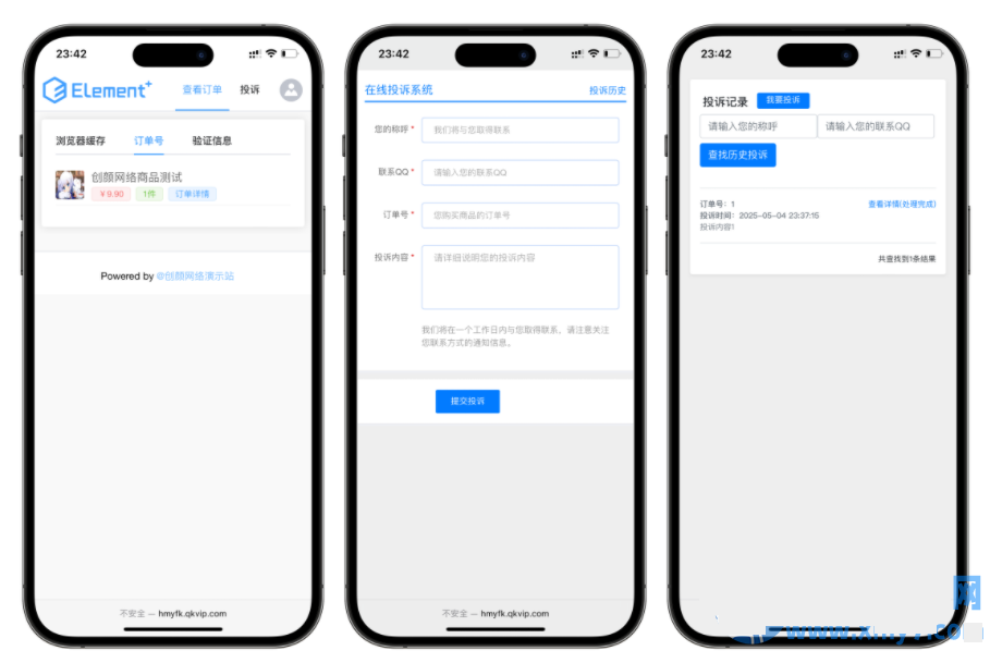 支持下单邮件通知,带投诉功能