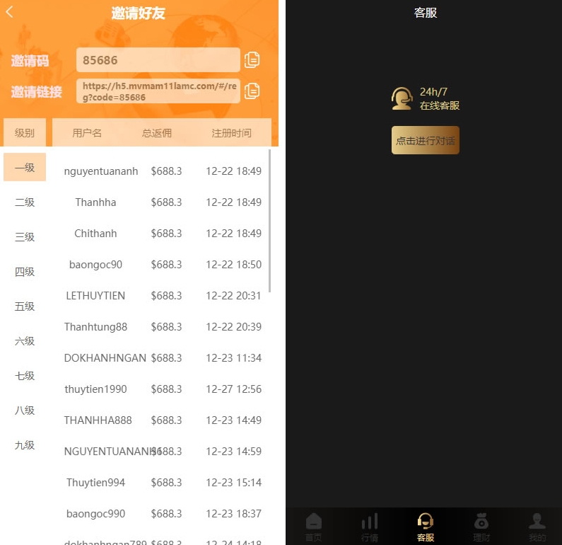 多级分销模式,全面代理,还有定期投资理财模块