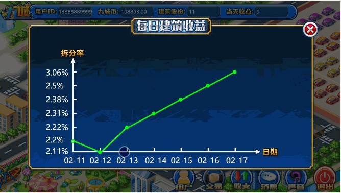 1、根据每天得到的收益倍率X玩家拥有建筑的股份数量=每天得到的静态收益