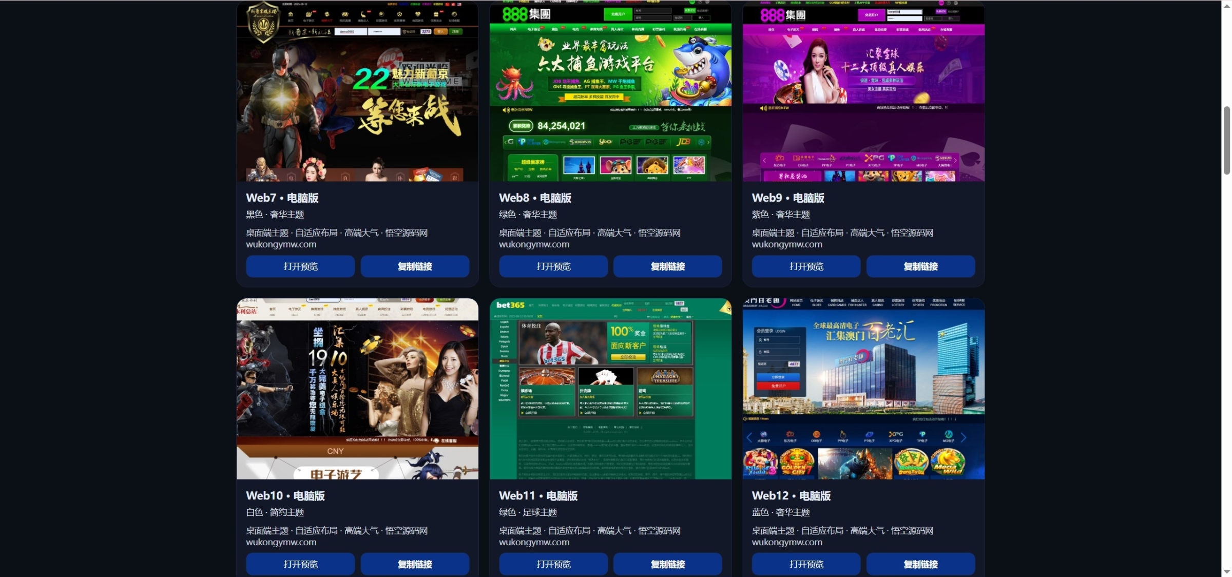 游戏现在集成了100多家,PC端模版一共有19个,手机端模版有12个(看的演示站只开放了这些,实际以搭建后的为准)