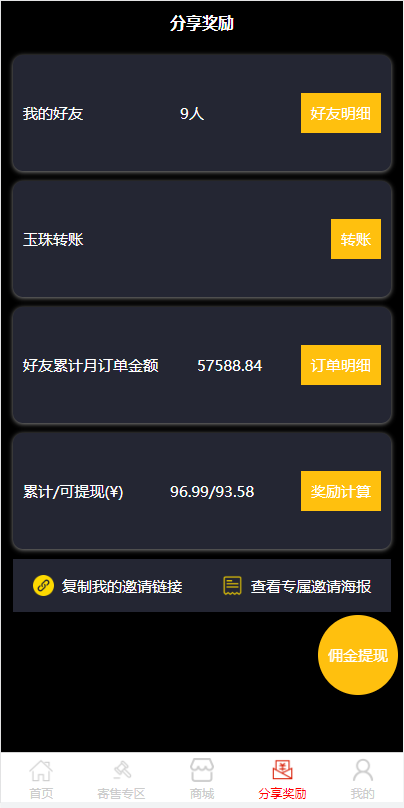 ⑦、玩家提货可获得商品相应价值积分,可在积分商城党换商品
