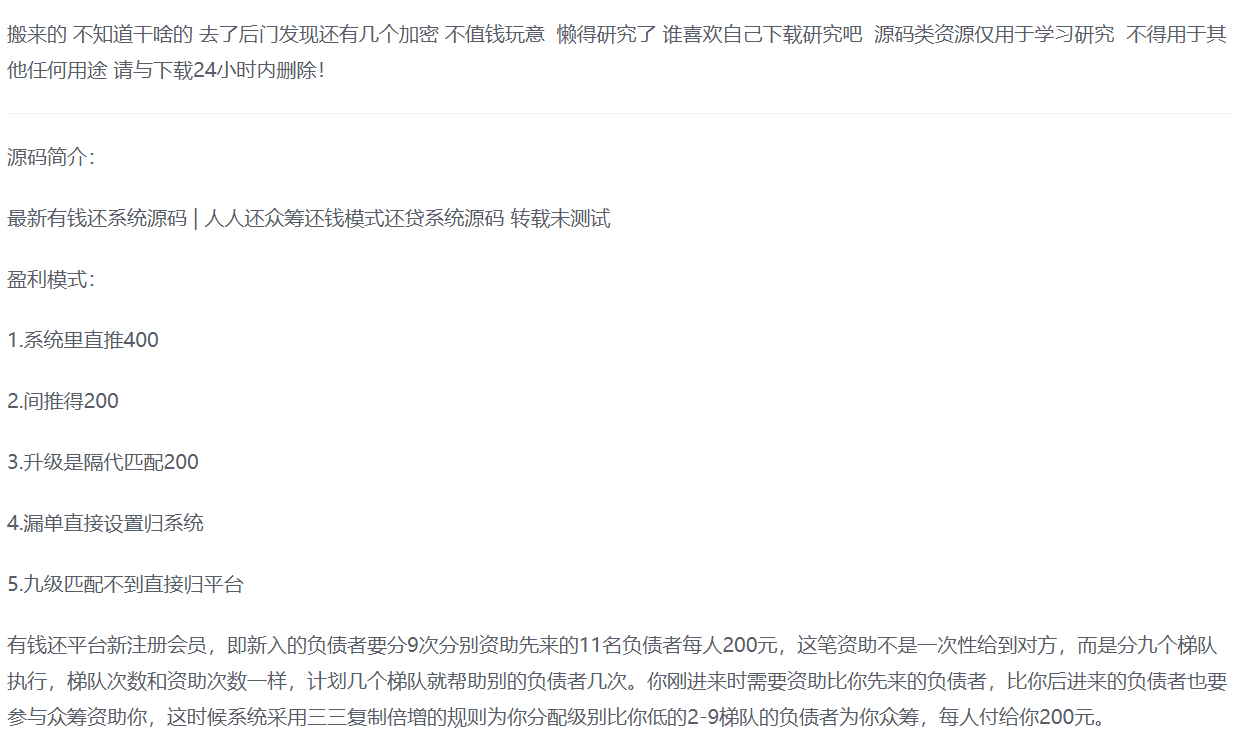 admin APP源码 投资理财 2026-02-01 YM787- PHP裂变贷款还款模式理财源码 暂无优惠当前隐藏内容需要支付1500积分已有0人支付 支付查看 RIPRO主题是一个优秀的主题,极致后台体验,无插件,集成会员系统521博客源码 » YM787- PHP裂变贷款还款模式理财源码