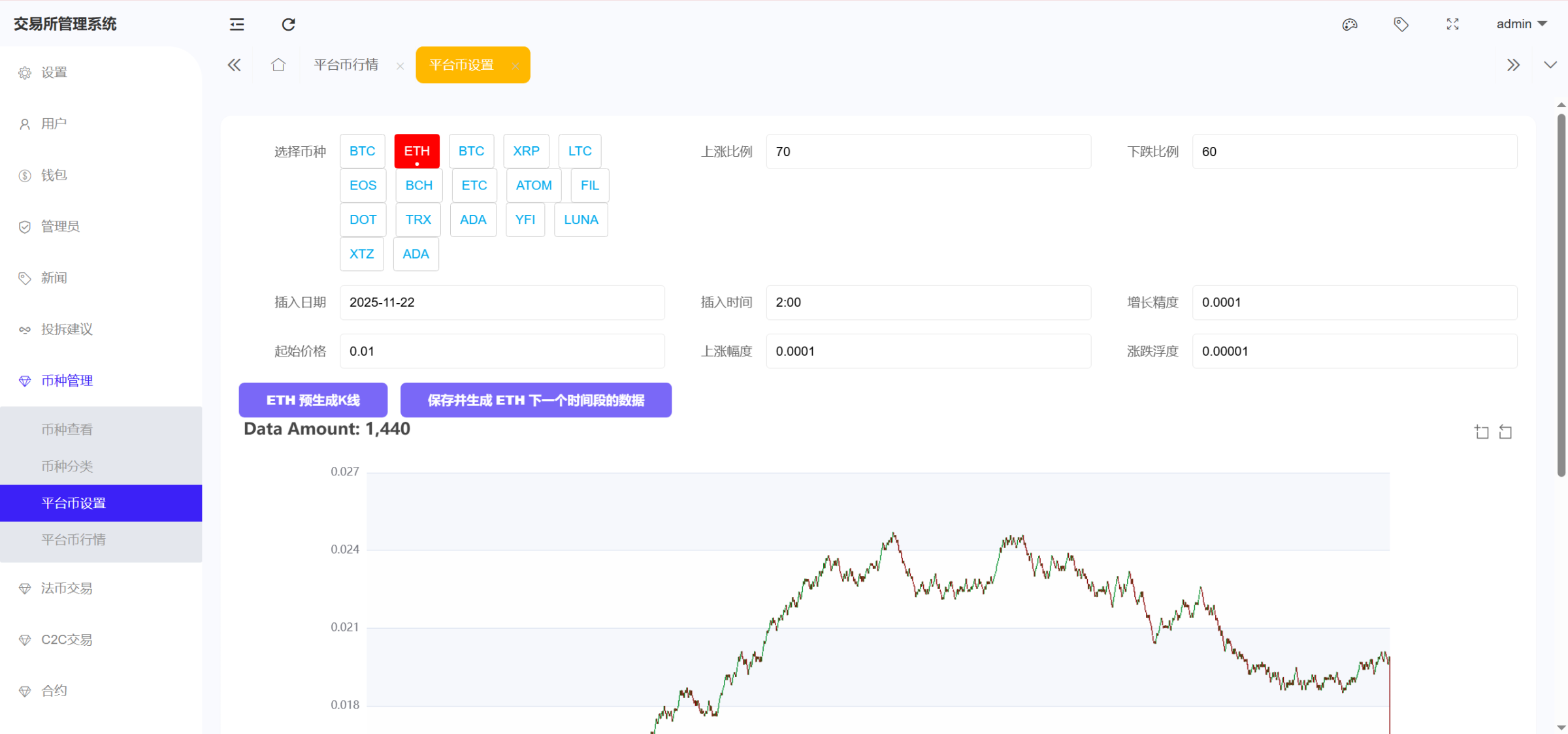 后台有平台币K线,应该是可以添加平台币的,还有币种控线的功能,不过我没测试,这套我给一个简单的启动脚本就行了,其他计划任务自己在根目录下面输入命令 php artisan 进行查看,因为有点多 前端vue之前没有依赖,安装依赖包有点问题,我也给你们装好依赖了,不然有些人根本搞不来 功能介绍: