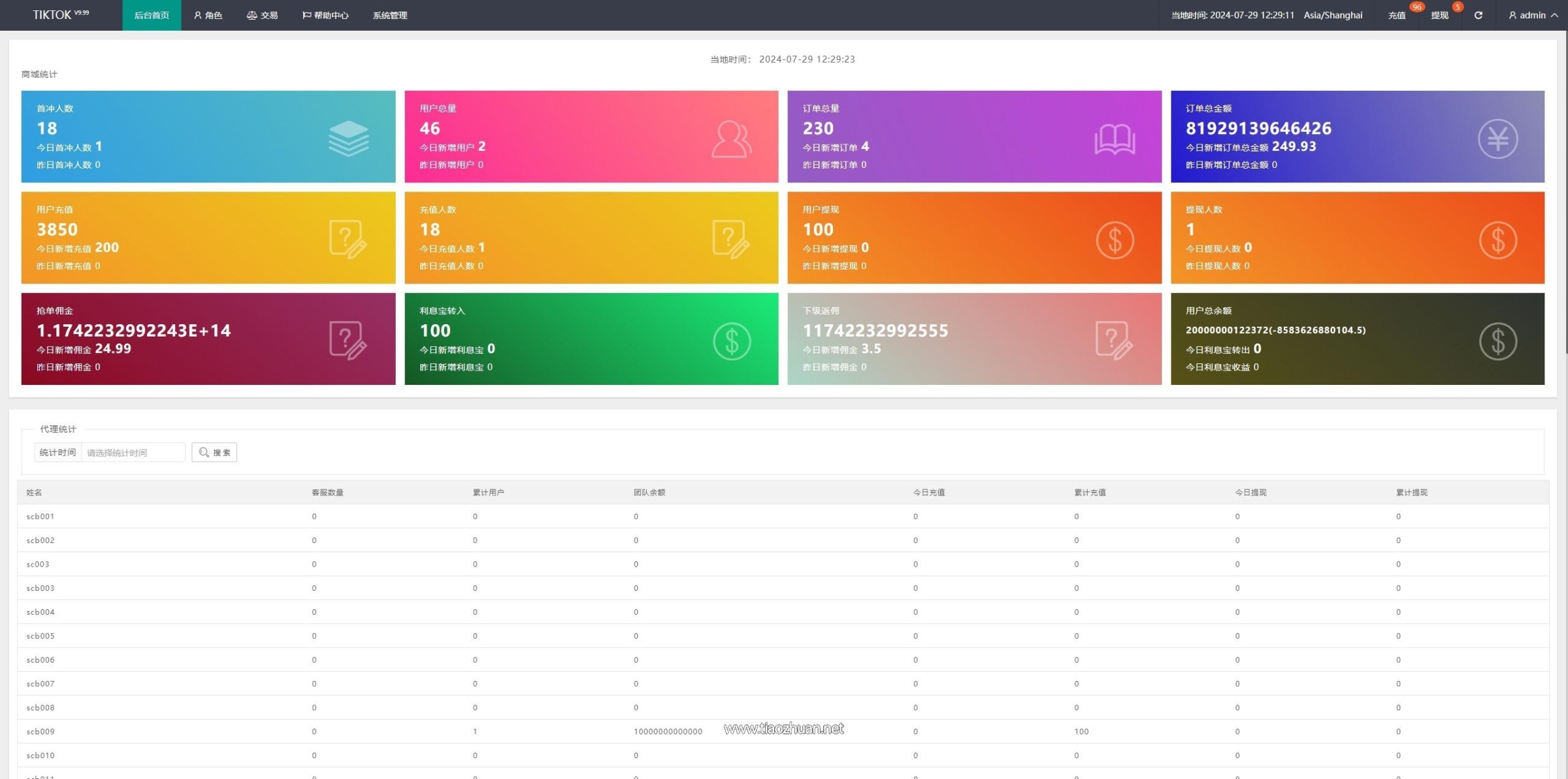 后端Thinkphp框架,系统支持叠加组,打针,余额宝等功能。usdt充值,权限代理后台