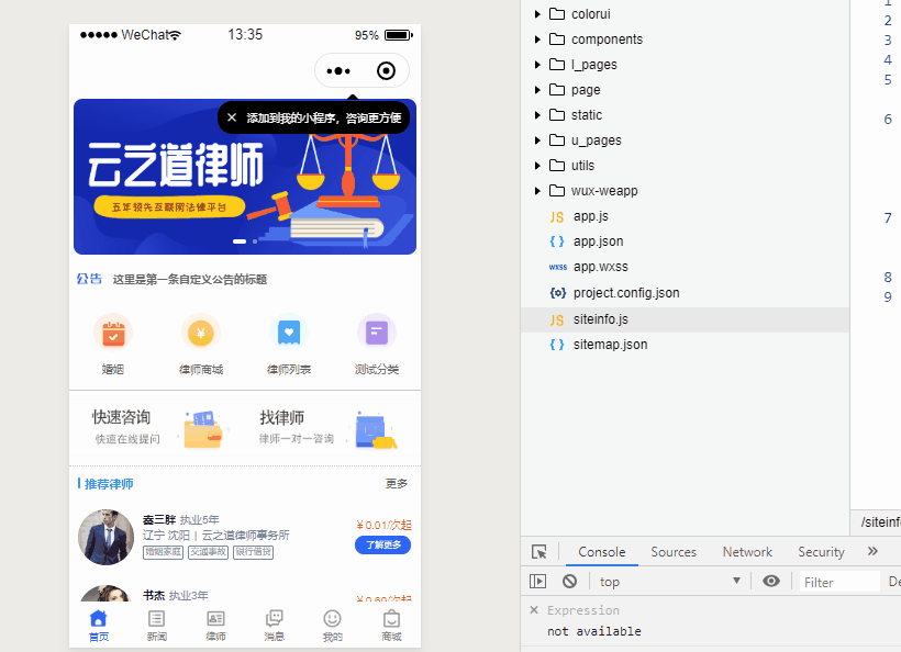 律师小程序是连接用户和律师两端的法律服务平台。