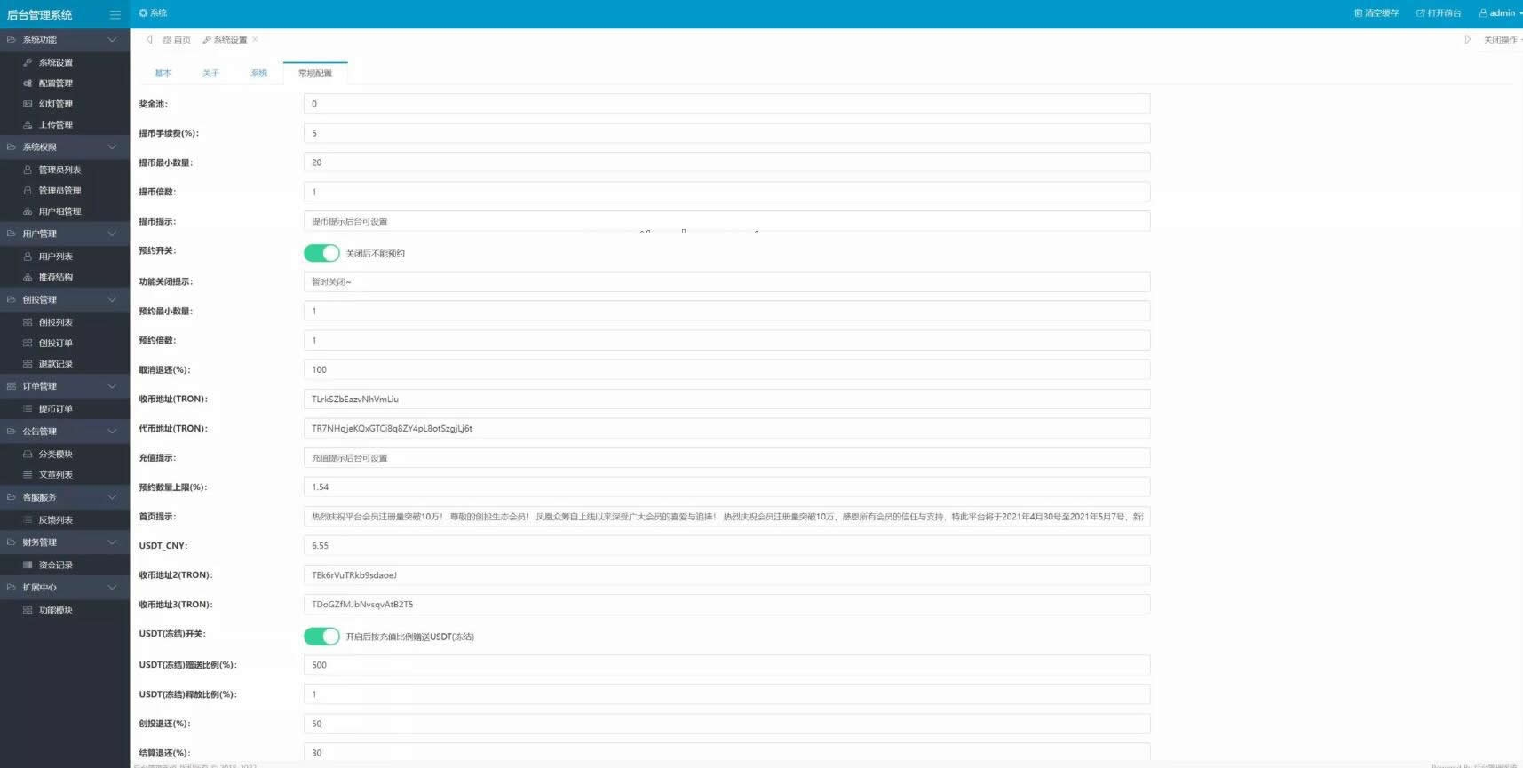 一款usdt众筹投资分红的系统,支持发布多期众筹,步骤分为预约中-创投中-已完成