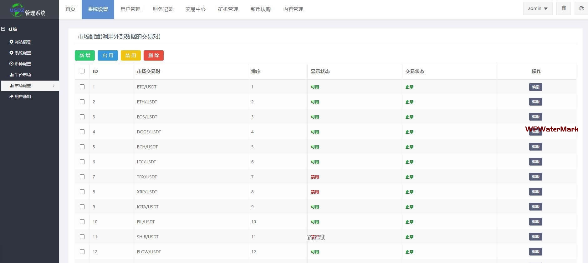 后台地址:/admin 后台账号:admin 密码:123456
