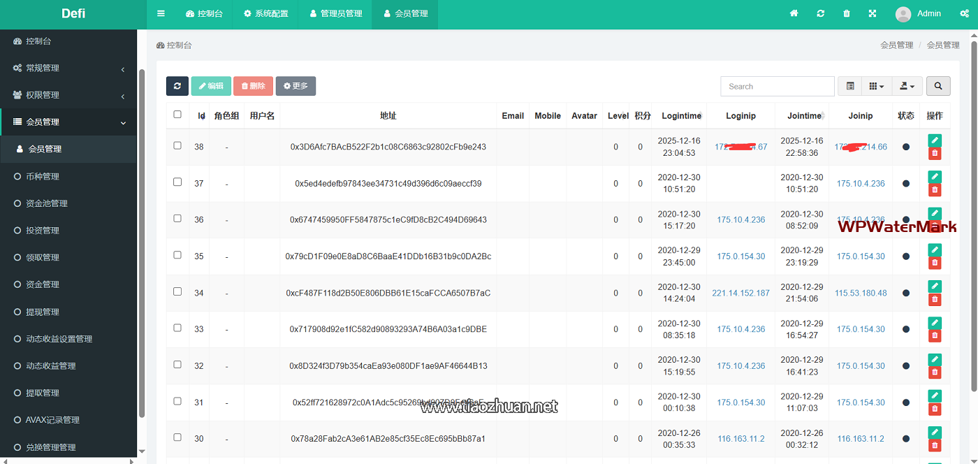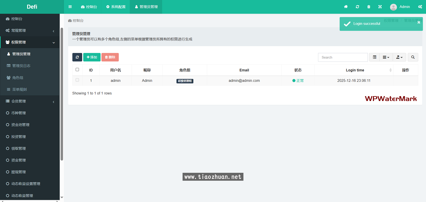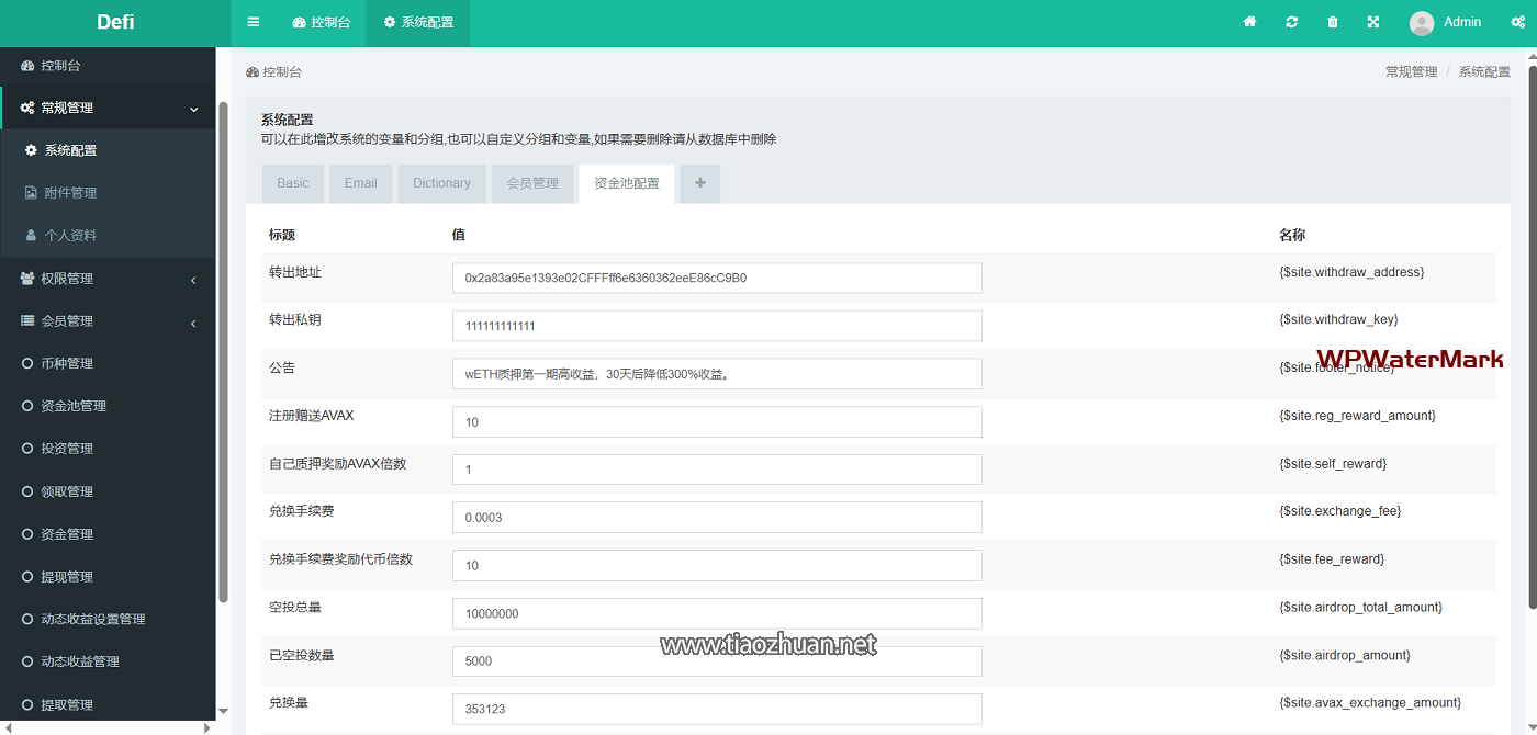 后台地址:你的域名/defi 后台账号:admin 密码:123456