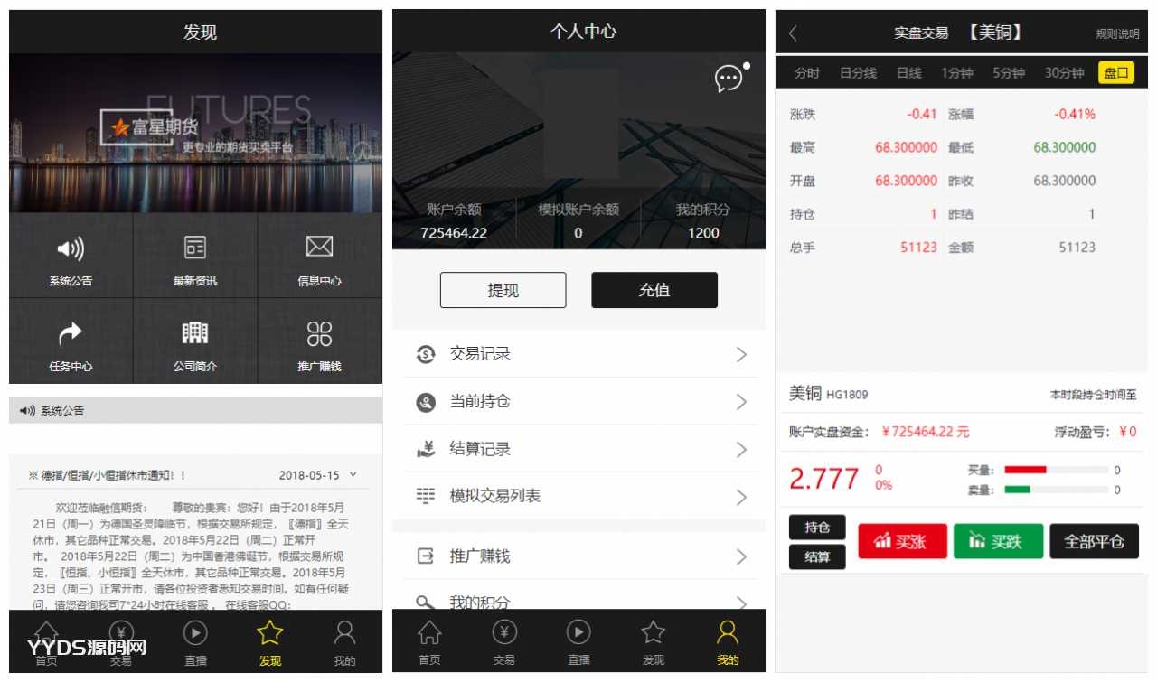 yii高端系列微盘点位盘PC+手机+国内外期货盘+带直播页面+资讯独立页面+完整数据+教程