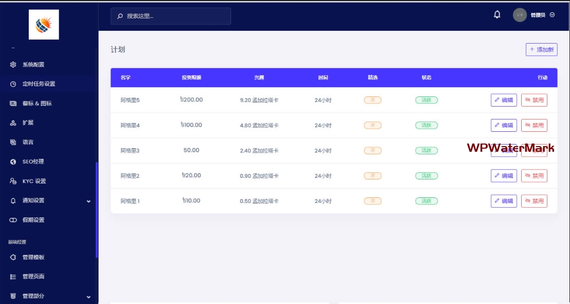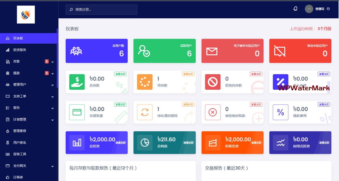 类似的海外投资理财程序都是同一套框架,这套好像是根据以前一套共享充电宝来改的,只是换了前端UI和产品,后台登录有一个报错已经修复了